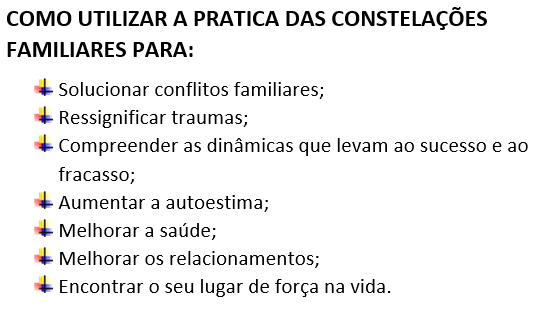 - Quer utilizar os conhecimentos das Constelações Familiares como recurso NA SUA ÁREA DE ATUAÇÃO;